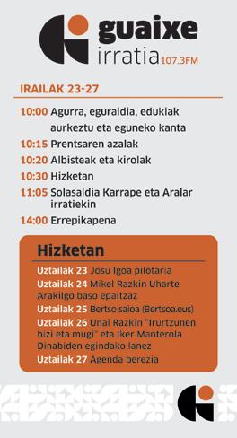 GUTUNAK: Karaktereak, gehienez: 1.900 (hutsuneak barne). GUAIXEk eskubidea du gutuna laburtzeko. Gutunak ezin izango dira kapituluka bidali. Gutunak asteartea 10:00ak baino lehen bidali beharko dira erredakziora.
