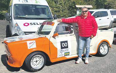 Harby Fitoko Igoeran. Leihoan lasterketako pegatina guztiak jartzen zituen. UTZITAKOA