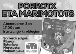 Abenduaren 3an Euskararen Eguna da, eta Irurtzunen Katxiporretako pailazoekin ospatzen dute; 17:00etan, kiroldegian, Porrotx eta Marimototsen Ostirala iritsi da! ikuskizun berria izanen da. Sarrerak Pikuxarren, Estankoan, Martxuetan eta Leitzako Maimurren eros daitezke. Pailazoen ikuskizun berria 2023ko azaroan argitaratutako Txapasen kaxa magikoa ipuin eta disko ilustratuetan oinarri -