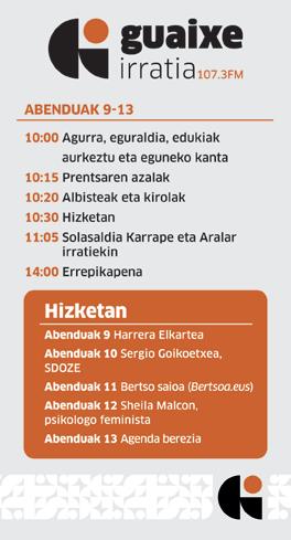 GUTUNAK: Karaktereak, gehienez: 1.900 (hutsuneak barne). GUAIXEk eskubidea du gutuna laburtzeko. Gutunak ezin izango dira kapituluka bidali. Gutunak asteartea 10:00ak baino lehen bidali beharko dira erredakziora. Gutunarekin batera bidali beharrekoak: egilearen izena eta abizena, NA zenbakia, herria eta harremanetarako telefonoa.
