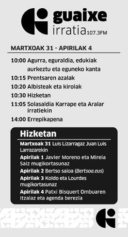 eta Altsasun izan dira dagoeneko. Apirilaren 11n, ostirala, 19:00etan, Irurtzungo kultur etxean izanen dira, eta Bisquertek azaldu duenez Etxarri Aranatzen, Lakuntzan, Uharte Arakilen eta Olatzagutian ere aurkeztea gustatuko litzaioke.
