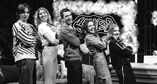 'Linbo'-ko kolaboratzaileak, Danel Galdaera, Maria Corovi, Ander Maldabi eta Maialen Sorzabalbere, eta Aitziber Grados aurkezlea. HIRU DAMATXO