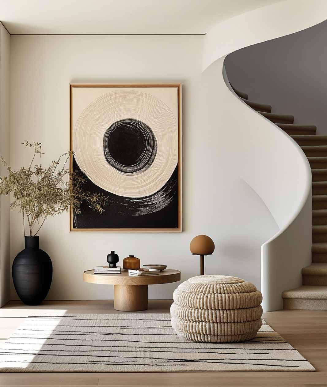 8. Biniloak edo paper margotua erabiltzen ditu Aurrekontu gutxiko etxe txiki baten dekorazioa praktikatzen dugunean, bolumen handiko objektuak erraz bihur daitezke nahi ez dugun arreta gune. Biniloak edo paper pintatua erabiltzea bolumen handiegia har dezaketen beste dekorazio-objektu batzuk saihesteko modu bat da; pitxerrak, marko handiak dituzten koadroak, dekorazio-apalak eta abar.