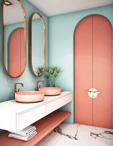 Dutxan edo bainuaren zoruan marmola da joera; ahal dela, zainekin edo berde bizi eta gorri terrakotekin. Gainera, 2024an formatu handiko lauzak ikusiko ditugu batez ere. Arratoi- edo zume-osagarrien erabilerak spa baten estetika organiko eta natural mota bat osa dezake, bainugela modernoan astiro baina segurtasunez inposatzen ari dena.