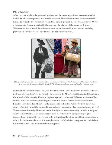Pito y Tambour After the cascabelles, the pito and tambour are the most significant instruments that Padre Sanvitores requested and surely received. These instruments were essential in renaissance and baroque music ensembles in Europe and also in Las Danzas de Moros y Cristianos in Spain, specifically the moresca, the dance of the converted Moor. Missionaries introduced these instruments to Mexico and Latin America and they played a distinctive role in the dances of Christian conquest.