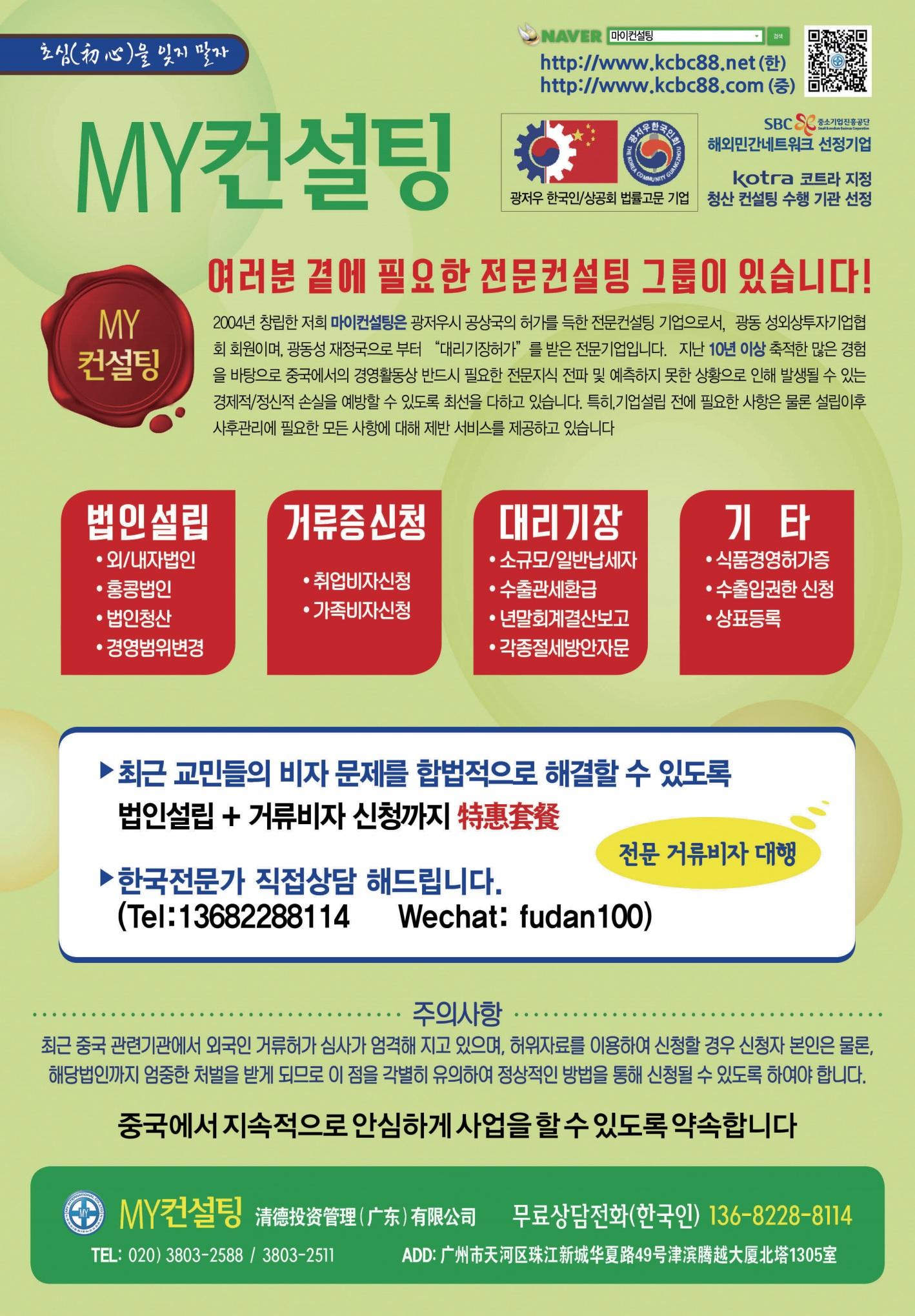 문의전화: 138-2872-8200 / 136-2237-2559 010-5605-5192 (한국)