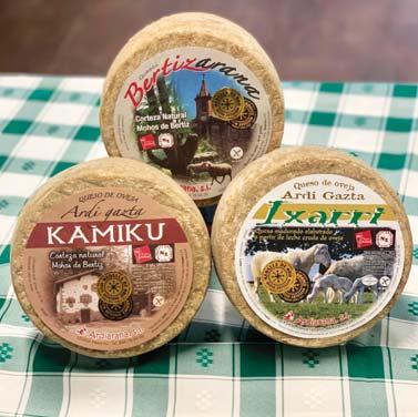 Elaboramos queso Camembertiz, tipo Camembert pero con leche de nuestras ovejas, en lugar de con leche de vaca, y así conseguimos el primer Camembert con leche de oveja del mercado. Más adelante nos propusimos elaborar un queso tierno con bífidus, (no lleva ninguna grasa añadida, como otros quesos de ese formato del mercado). Otra variedad que hacemos es el queso D.O. Idiázabal, con un rebaño de ovejas latxas.