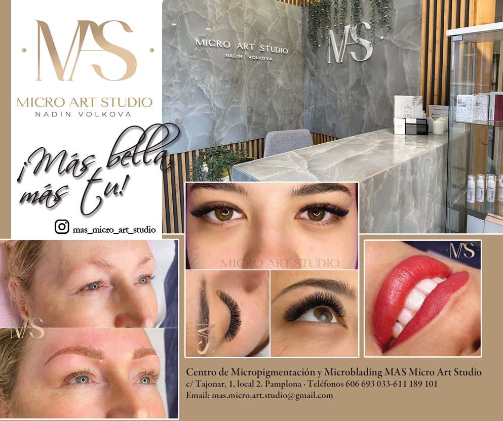 Sin embargo, tal y como nos explica Nadia Volkova, propietaria de Mas Micro Art Studio, centro de micropigmentación situado en la Calle Tajonar de Pamplona y que abrió sus puertas hace algo más de un año, esta disciplina abarca mucho más que el microblading. Son muchos años ya los que avalan su experiencia, tras haber trabajado en cuatro centros diferentes. Durante un tiempo trabajó en tres de ellos simultáneamente, algo que en ciertos momentos era complicado para ella. Esta circunstancia sumada a que ya contaba con una cartera de fieles clientas, la empujó a abrir su propio negocio. Nadia nos cuenta que: “Trabajo en el mundo de la estética desde 2011. Empecé haciendo uñas y se me daba muy bien, pero yo quería crecer, siempre busco el crecimiento personal. Seguí con pestañas, en 2014. Empecé a apren-