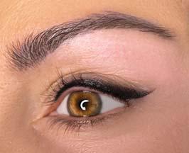 la raya clásica. Yo lo hago muy fino. La otra técnica que empleo es eyeliner difuminado, como si fuese sombra”.