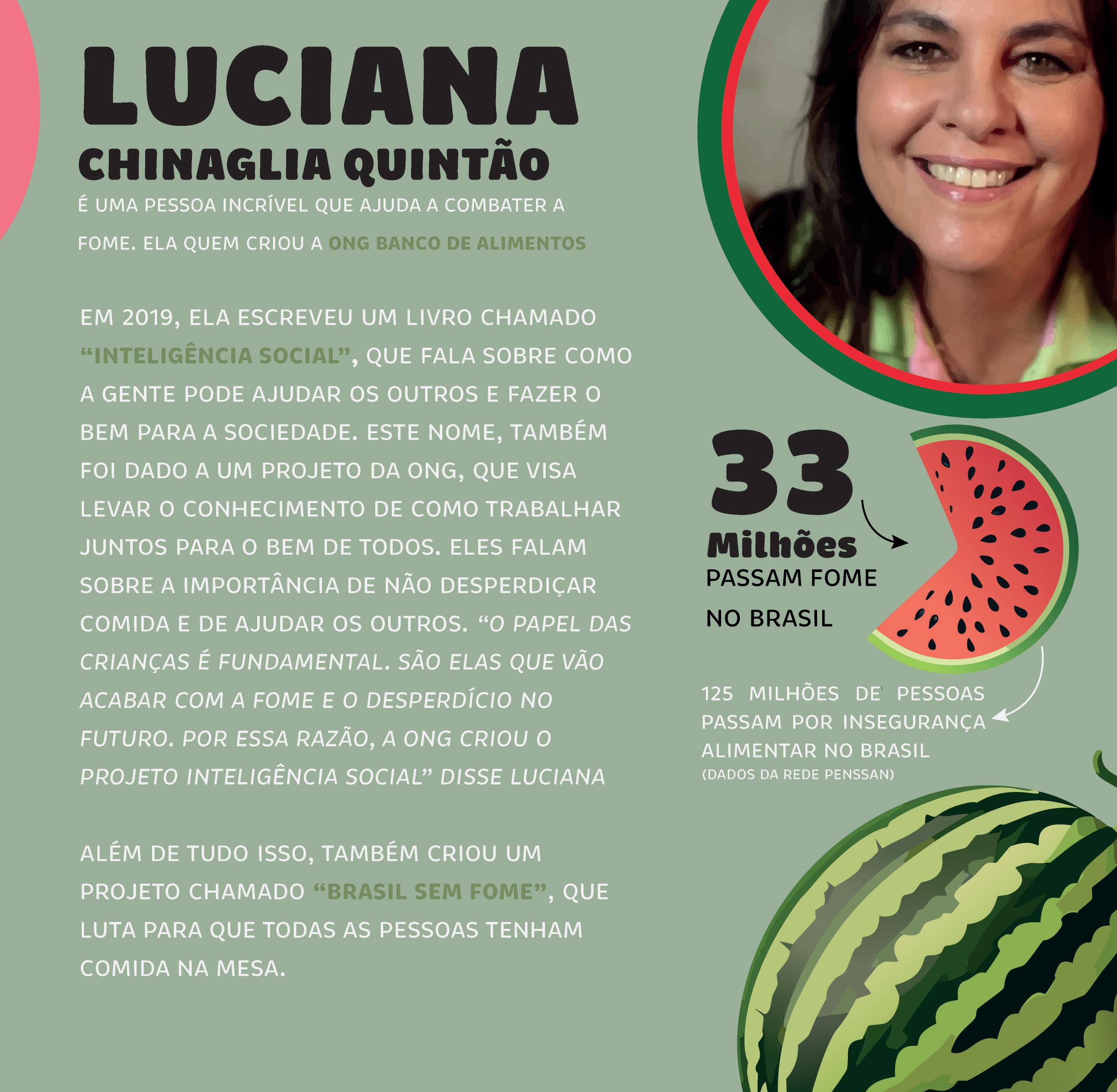 Além disso, gostaríamos de agradecer à ONG Banco de Alimentos e à Luciana Chinaglia pela parceria e apoio neste projeto. Sua dedicação à causa da segurança alimentar e à redução do desperdício de alimentos é inspiradora, e estamos honradas pela oportunidade. Por fim, queremos agradecer a todos os nossos amigos, familiares e colegas que nos apoiaram ao longo deste processo.