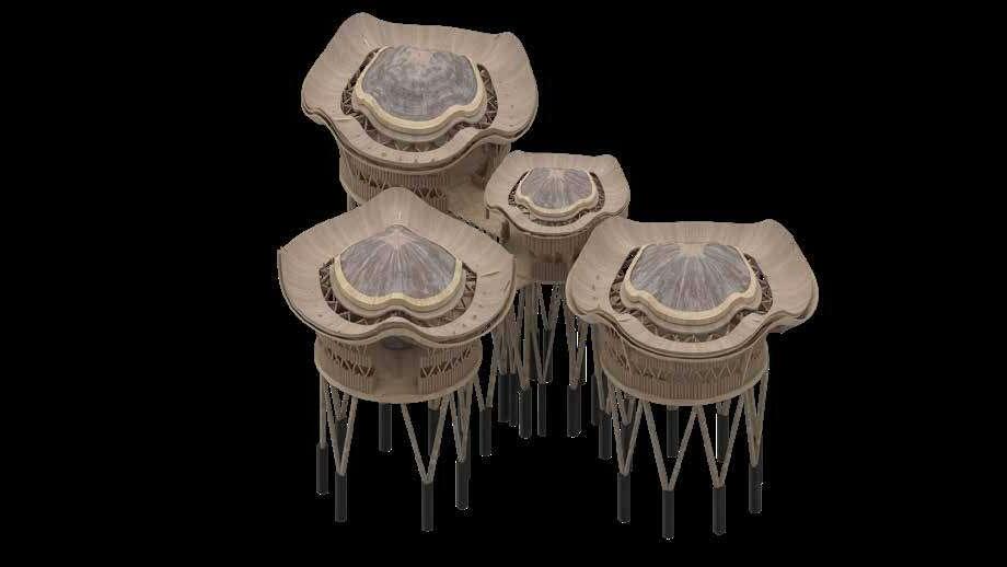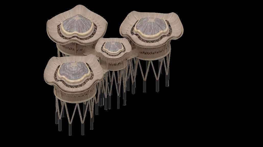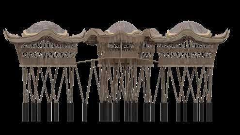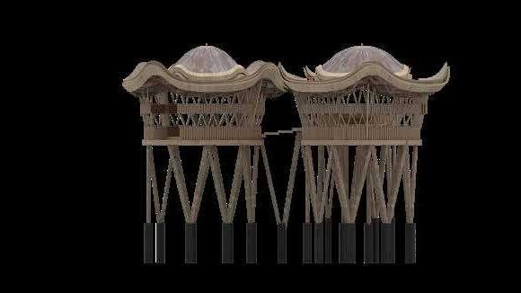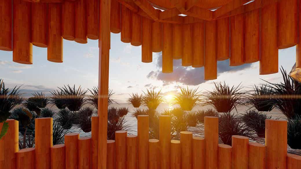 Ecocultura fue diseña da para ser un ambien te ecofriendly, por lo cual se planteó que los materiales debían ser de fácil acceso y con poca huella de carbono. Por ejemplo, la opción de caña y mangle responde de manera ótima al entorno y esto facilita la construcción y tratamiento a la larga.