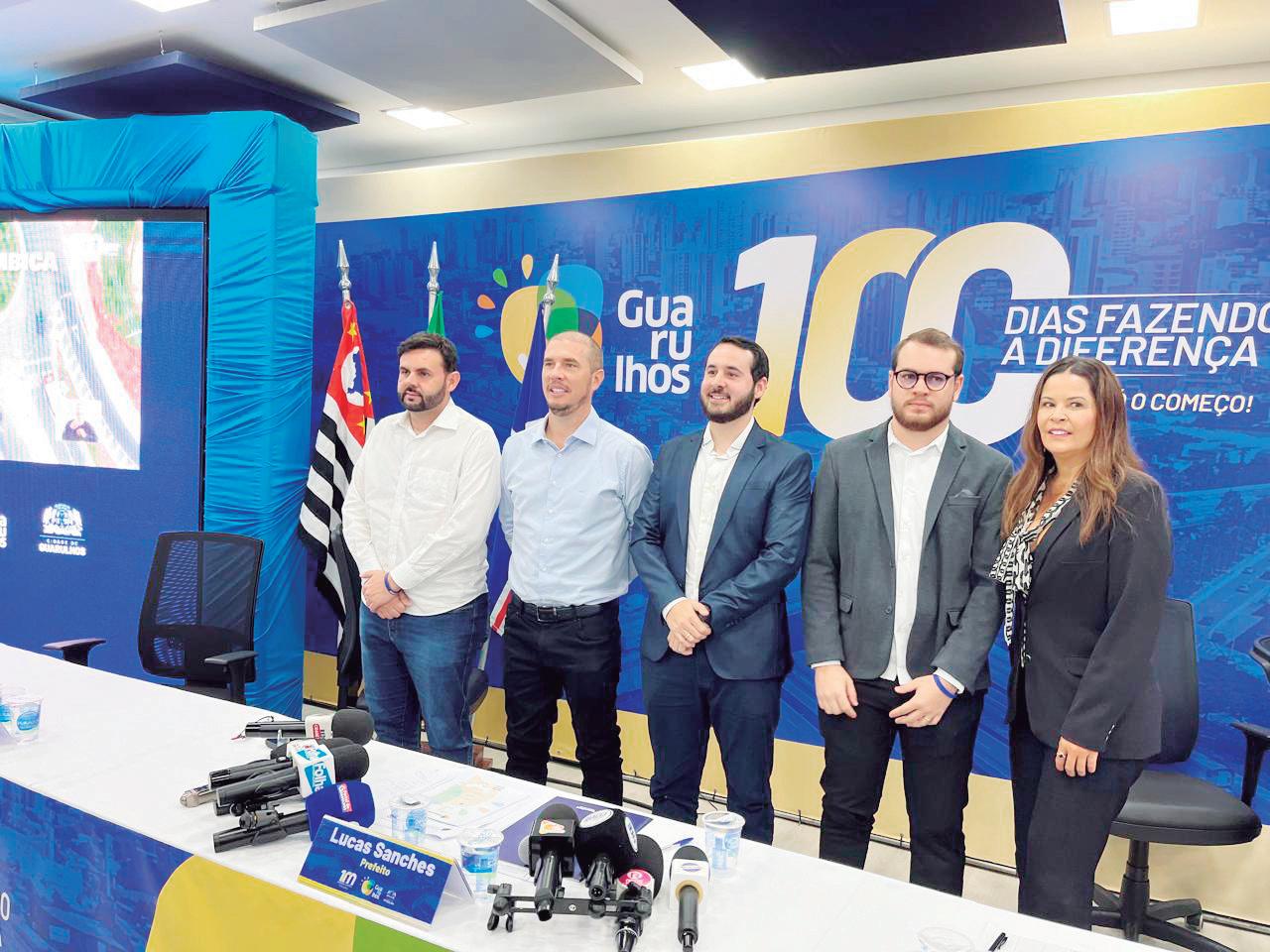 ITBI, pelos próximos cinco anos, para pessoas de baixa renda. Outras 5.000 famílias ganharam mais qualidade de vida com a reurbanização da região do córrego Moinho Velho. A Prefeitura ainda executou 8.033 atividades de zeladoria, entre roçagem, desassoreamentos e outras ações, e firmou acordo com o Governo do Estado para retirar mais de 500 mil metros cúbicos de sedimentos do Rio Tietê, melhorando a vazão das águas pluviais e auxiliando no combate às enchentes nos bairros da região, como a Vila Any. Motoristas já sentem as melhorias no trânsito e na mobilidade nos primeiros 100 dias do ano com o Trevo de Cumbica, que saiu do papel após mais de 30 anos de espera, a reorganização dos semáforos e outras intervenções viárias. Quem utiliza transporte público tem à disposição 15 novos ônibus equipados com wi-fi, entrada USB e câmera de segurança, incluindo o primeiro veículo movido a GNV no Brasil. O prefeito Lucas Sanches ainda anunciou que irá publicar um decreto determinando que todos os ônibus municipais novos deverão ter ar-condicionado.