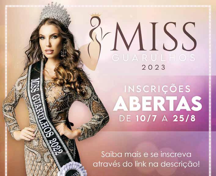 O concurso que escolherá a jovem mais bonita da cidade, o Miss Guarulhos 2023, receberá inscrições até a próxima sexta-feira (25). As interessadas devem acessar o portal turismo.guarulhos. sp.gov.br, conferir atentamente o edital e preencher o formulário de inscrição anexando as imagens solicitadas.