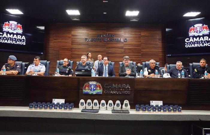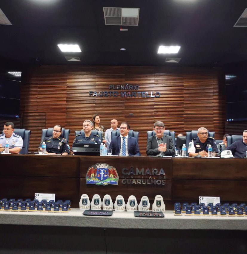 A Guarda Municipal de Guarulhos (GCM) de Guarulhos celebrou nesta sexta-feira (26), na Câmara Municipal, os 25 anos de trajetória de sua primeira inspetoria. Iniciado em 1999 com 19 membros, hoje o Grupamento de Trânsito (Gtran) conta com 40 agentes nas ruas e mais 25 em formação para cuidar da fiscalização viária da cidade. Neste ano a equipe já apreendeu 1.020 veículos por irregularidades administrativas, enquanto que em 2023 foram recolhidos 1.689.