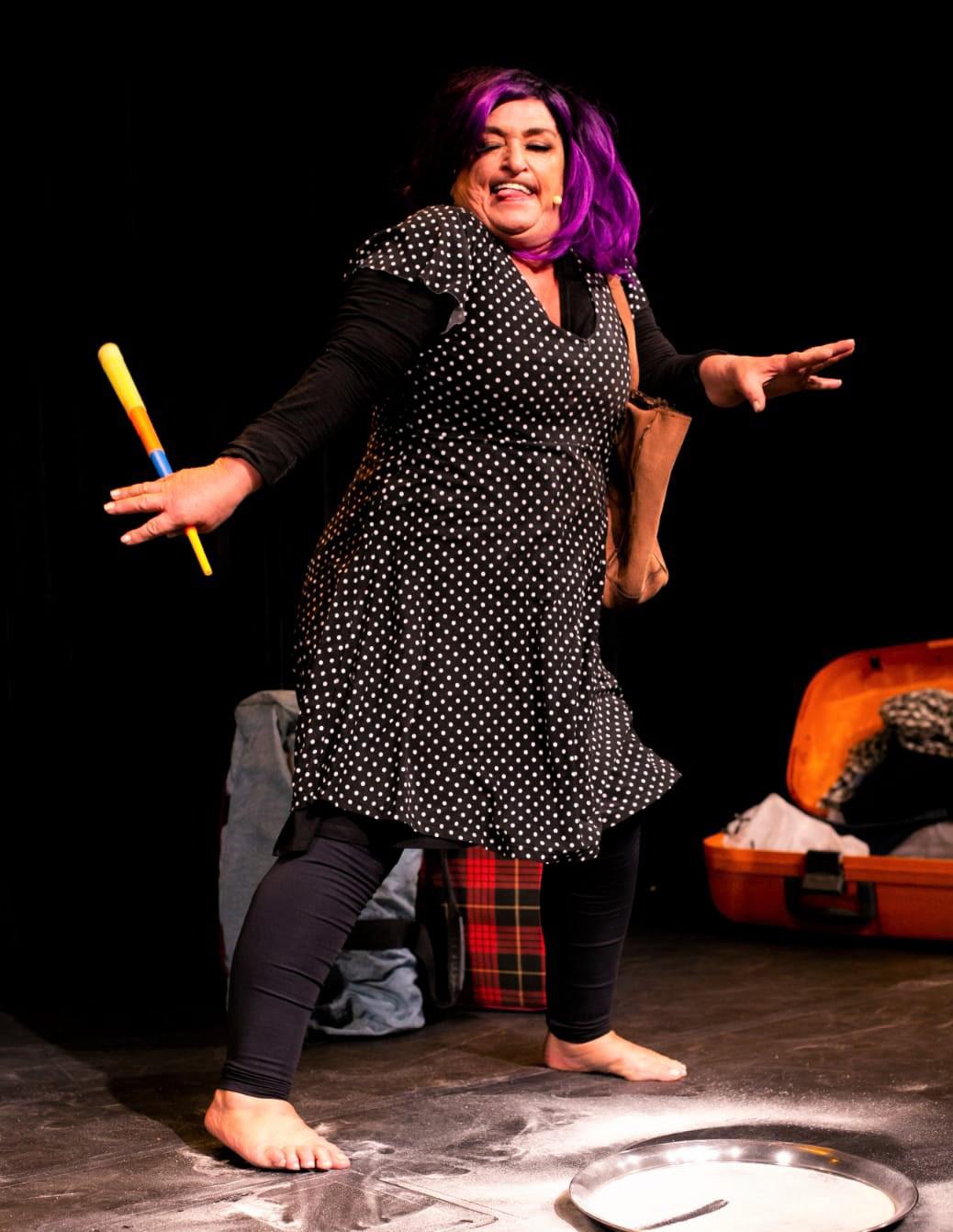 Sozinha em cena, a atriz revela o cami nho que percorreu para transformar o palco da comédia num espaço de questionamen to, de guerra ao preconceito, de respeito às minorias e transformação social. Em 70 minutos ela conta histórias vividas e revela o processo de criação que deu origem às suas criações icônicas. Entre elas: Aline Dorel, Santa Paciência, Advogada do Dia bo e Cinderela, personagens que pedem passagem para brilhar entre as histórias.