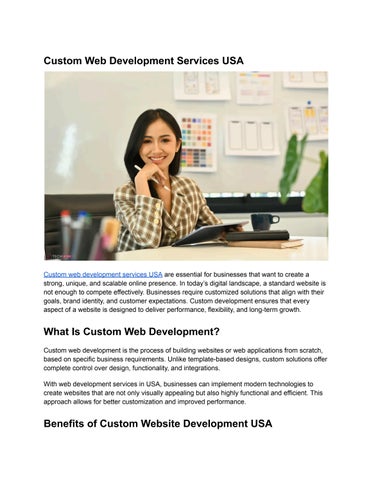 Custom web development services USA are essential for businesses that want to create a strong, unique, and scalable online presence In today’s digital landscape, a standard website is not enough to compete effectively. Businesses require customized solutions that align with their goals, brand identity, and customer expectations Custom development ensures that every aspect of a website is designed to deliver performance, flexibility, and long-term growth
