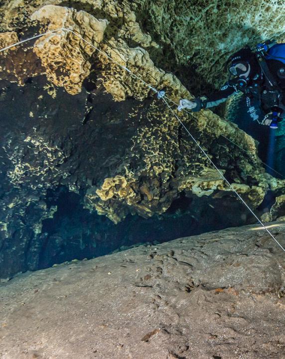with lines is an essential skill for all cave divers.PHOTO KIRILL EGOROV