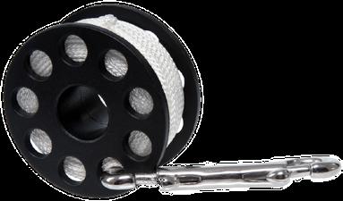 gency. Emergency situations that would justify the use of a safety spool include searching for a lost line or dive buddy or repairing a damaged line. Penetration reels typically carry between 45 and 150 m/150 and 500 ft of line, and divers use them to bridge the distance between the en trance to the cave and the permanent guideline (usually about 30 m/100 ft into the cave).