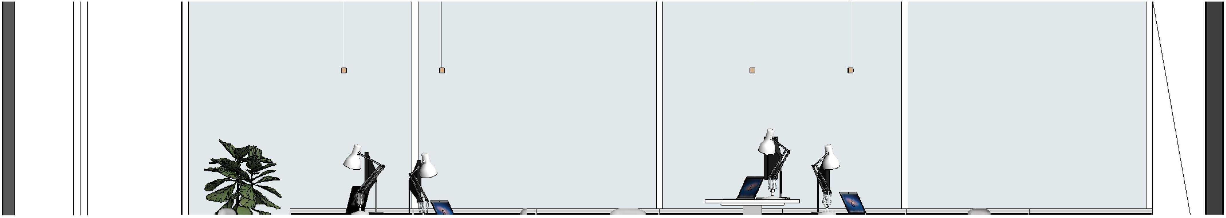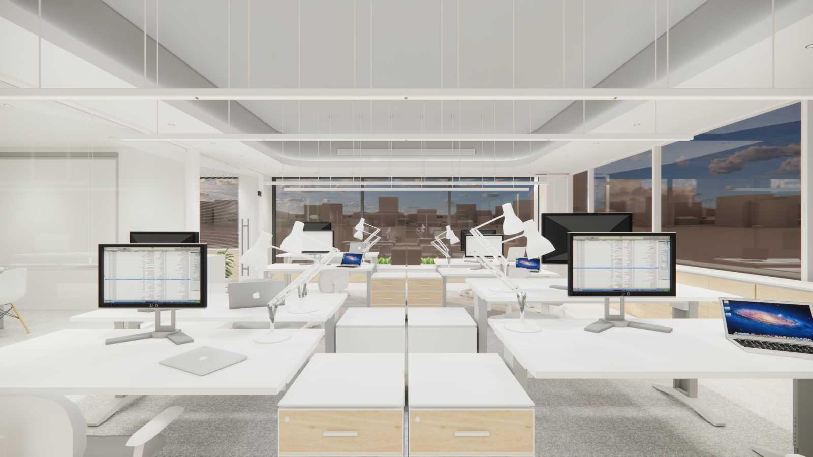 The luminaries are more than 2000 mm above the ground. Therefore, the employees won’t feel pressure when the height-adjustable desk rises to the highest level while standing and working.
