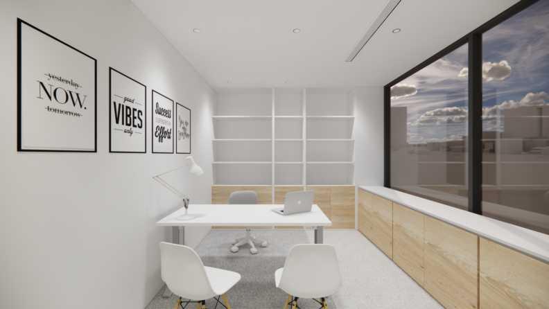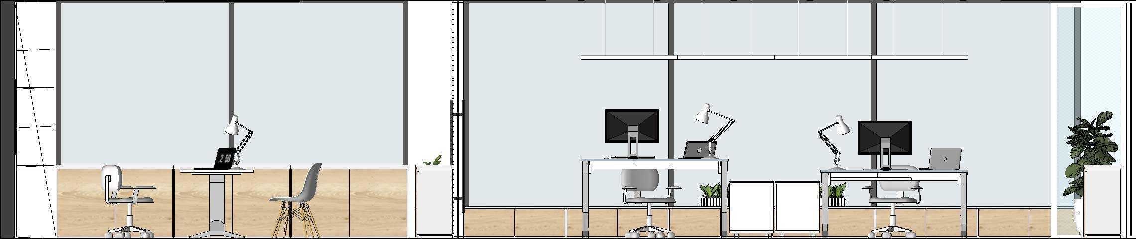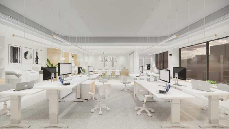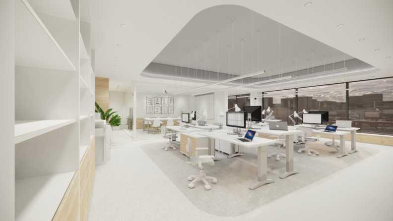 The east side of this office is full of floor-to-ceiling windows, and the main natural light will enter the space from the east side.