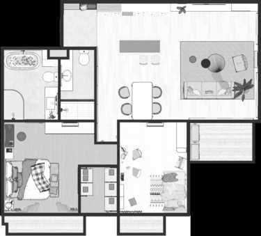 The flat of this plan located in the Taipei city center belongs to these parents. They have a daughter in first grade. They want their home to be in a light tone and brighter Modern style or combine with Scandi style. The wife has more clothes to store, so she wants more wardrobes in the master bedroom, or a walk-in closet. Due to the current young age of the daughter, as she gets older, the furniture will need to be replaced all the time. Therefore, I try not to install furniture fixed to the wall and ceiling so that it could be better moved and replaced in the future.