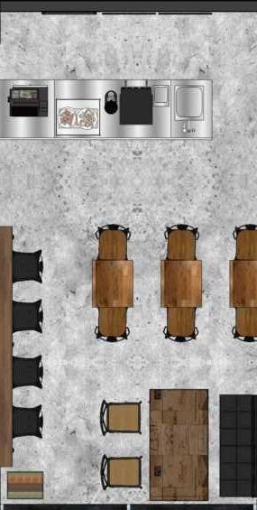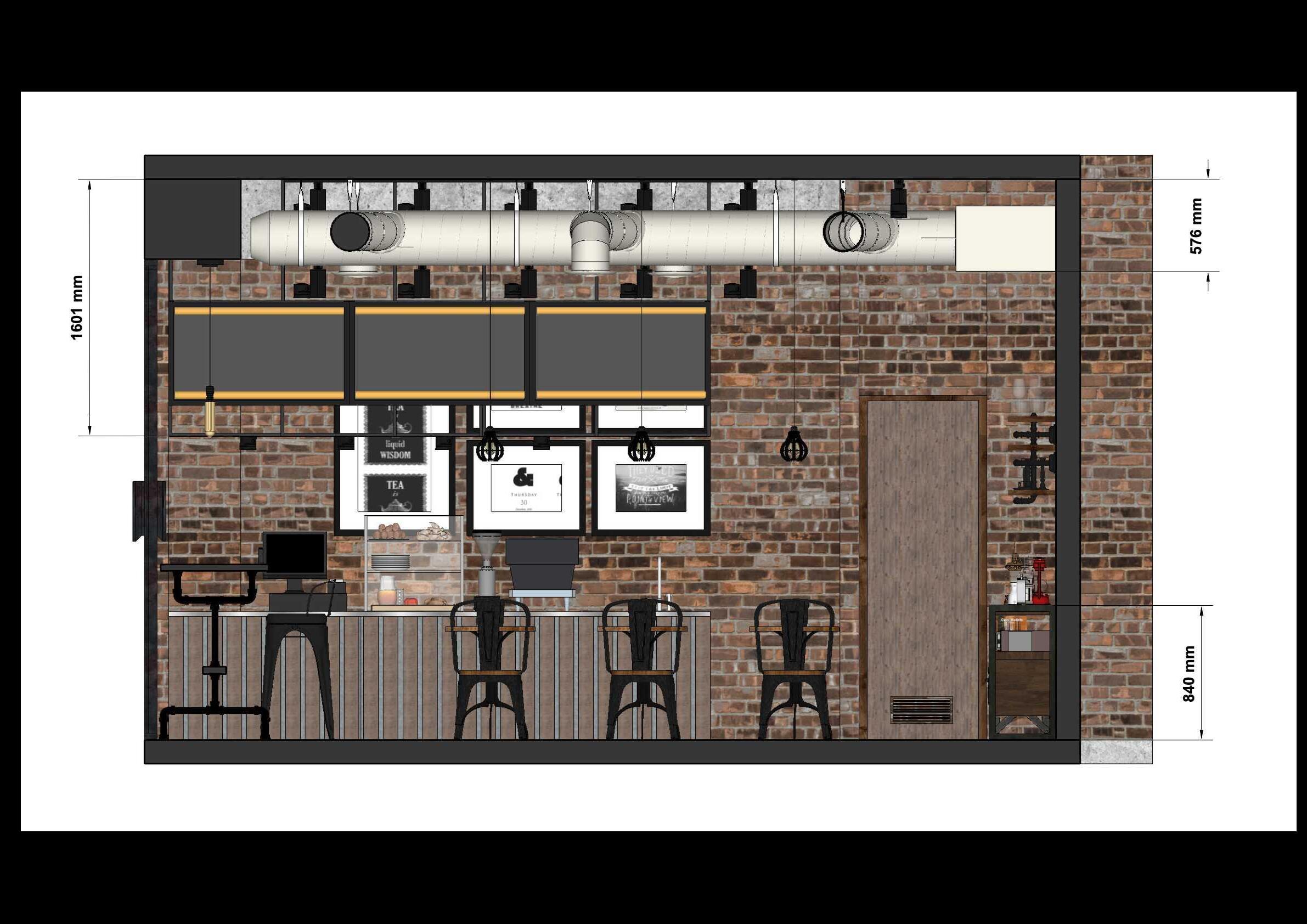 The menu is arranged in this way, not only for the reasons mentioned in “INTERIOR ELEVATION - WEST SIDE”, but also to be closer to the front door and the two floor-to-ceiling windows. This makes it easier to attract passers-by to flip through the menu, at the same time it helps them better understand what this shop sells.
