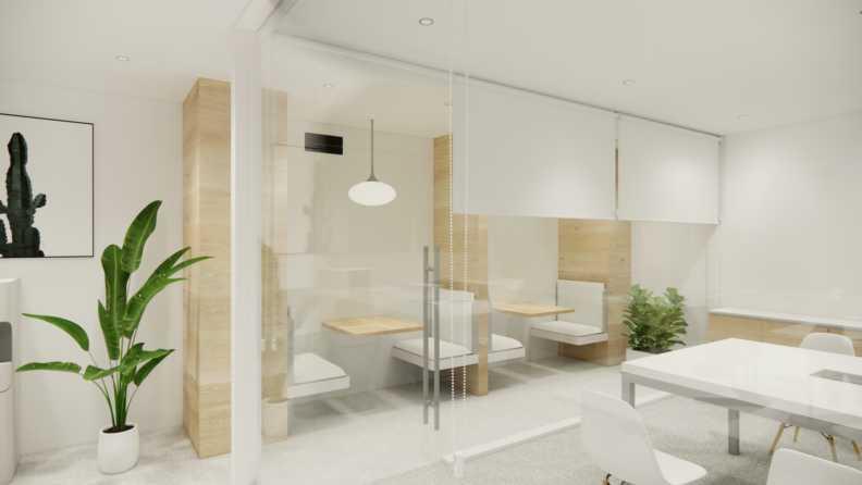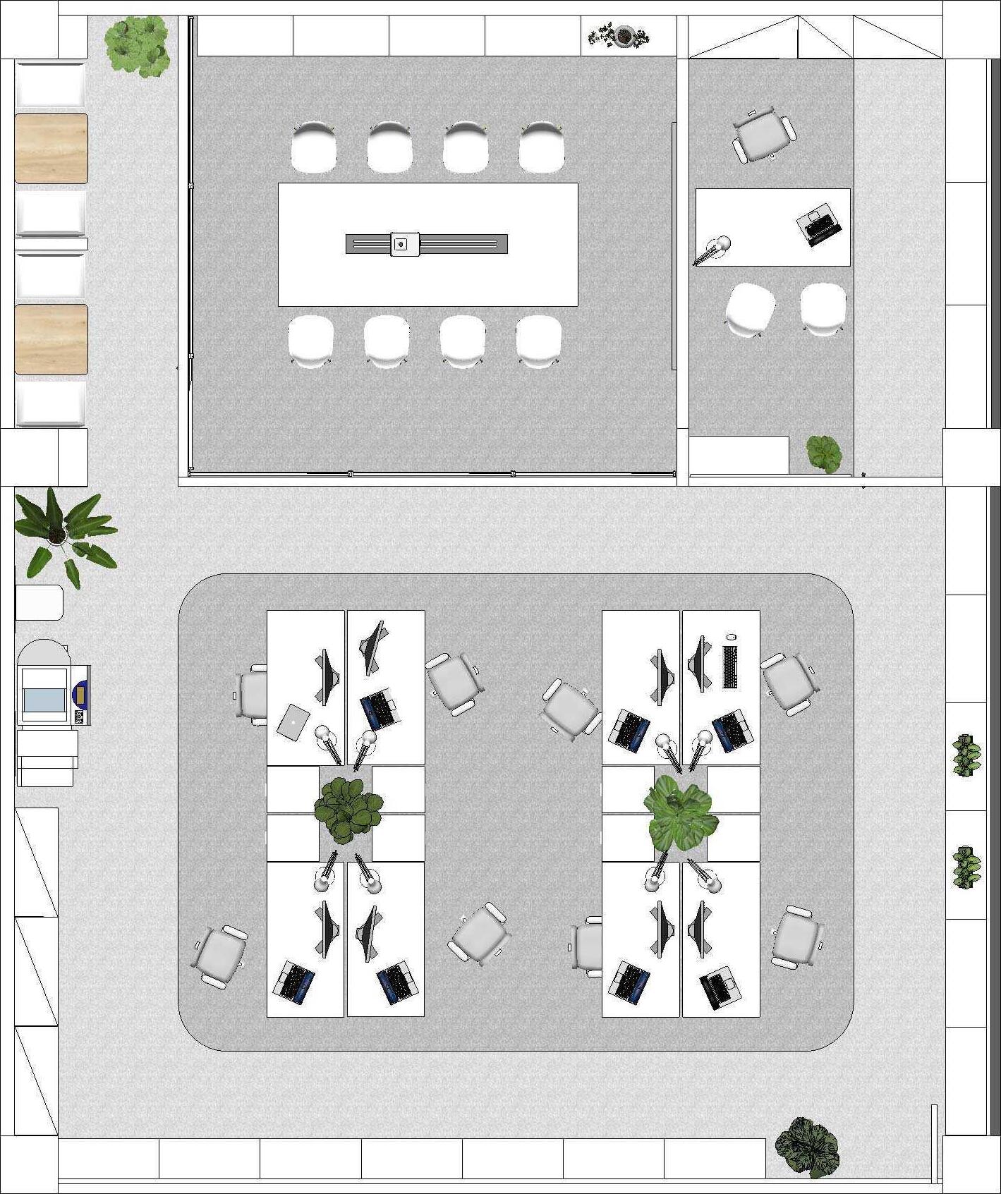 If there is space left, small rest areas could be planned for employees to eat, rest, or for clients to use when the meeting room is occupied.