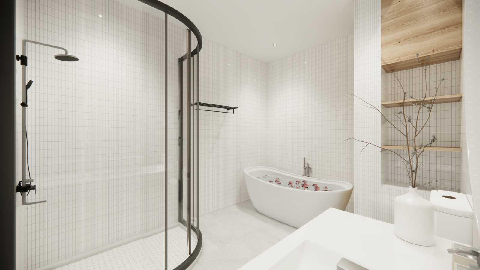 Since the en-suite bathroom in the master bedroom is relatively large, it is also possible to install a bathtub.