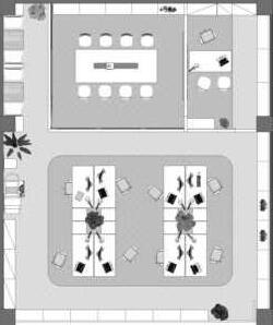 In addition, the boss needs a separate space, as well as a meeting room that could accommodate all employees. Also, they need a lot of storage space for documents and larger items like billboards or promotional materials for events. Besides, a photocopier and a water dispenser will need to be placed.