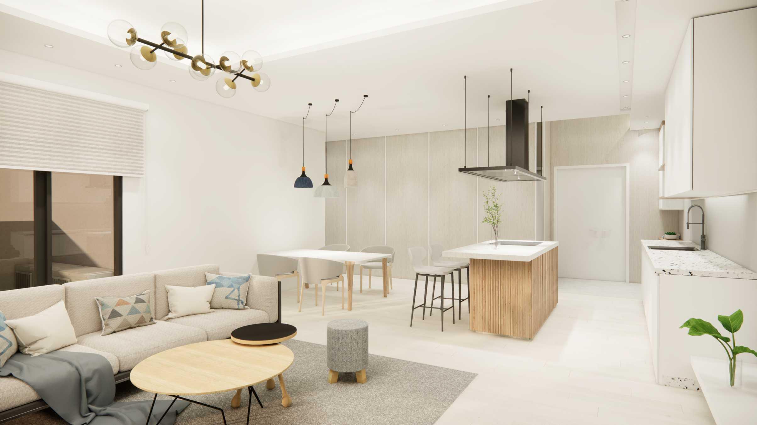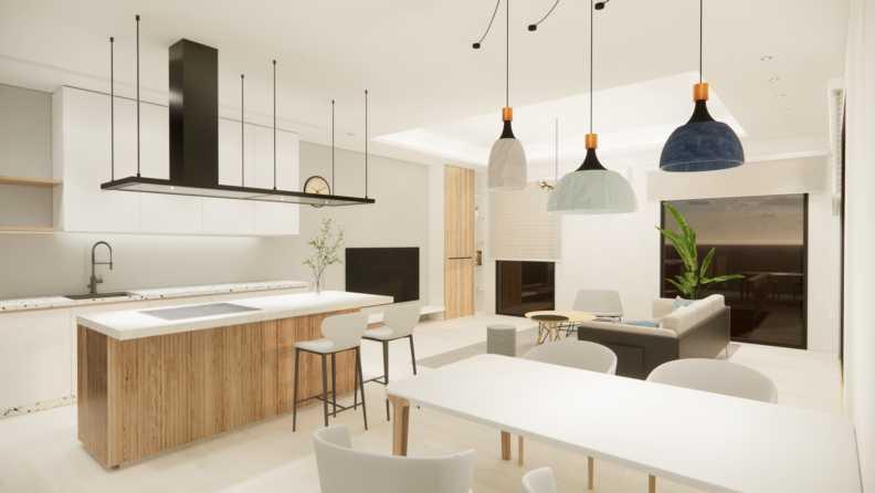 In order to make the kitchen look more spacious, it will be set as an open kitchen. In addition, I also recommend that homeowners embed the refrigerator in the cupboard to make the overall space a little cleaner and more comfortable. We decided to place the refrigerator on the far right of the wall side cabinet; therefore, the kitchen would not have an obtrusive general upright refrigerator.