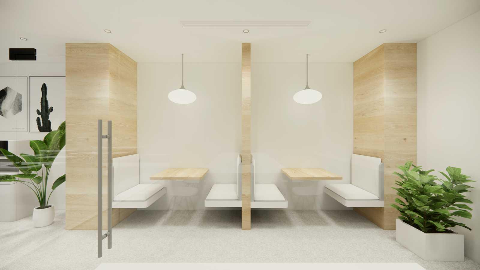 By moving the original entrance to the new location, the two floor-to-ceiling windows will enclose a rectangular space for seating area, which not only increases the natural light, but also shortens the distance between the customers and the scenery outside.