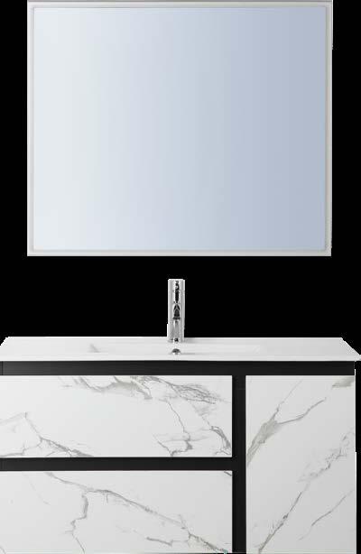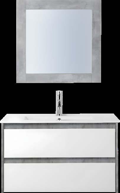 Specchio con profilo MDF rivestito melaminico 720x720mm Lavabo in ceramica 810x460mm