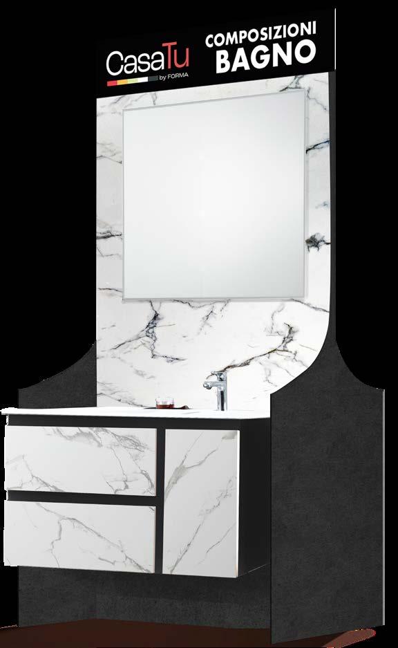 Con un ingombro di circa 1 metro quadro è possibile esporre un’isola con n.2 Compo Bagno