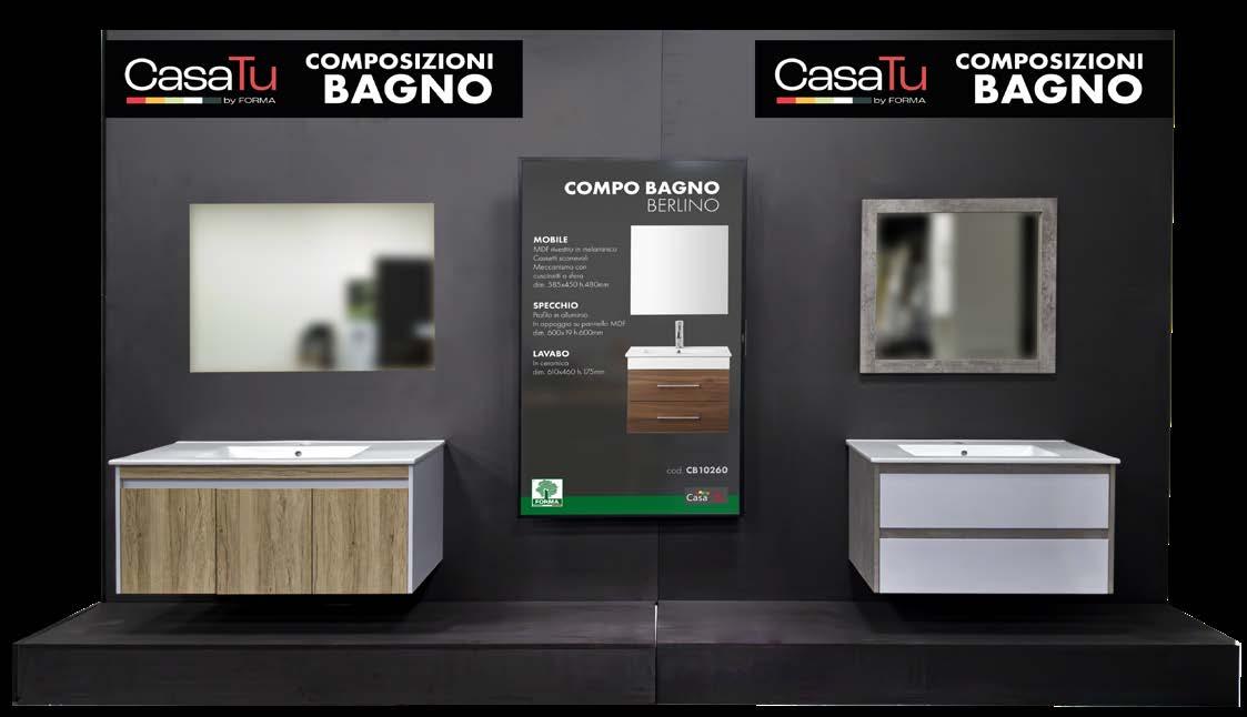 Il progetto Bagno CasaTu by FORMA è la nuova soluzione per la vendita a libero servizio delle Compo Bagno. Proponiamo 4 soluzioni ideali per esporre composizioni moderne ed eleganti, con un eccellente rapporto qualità prezzo.