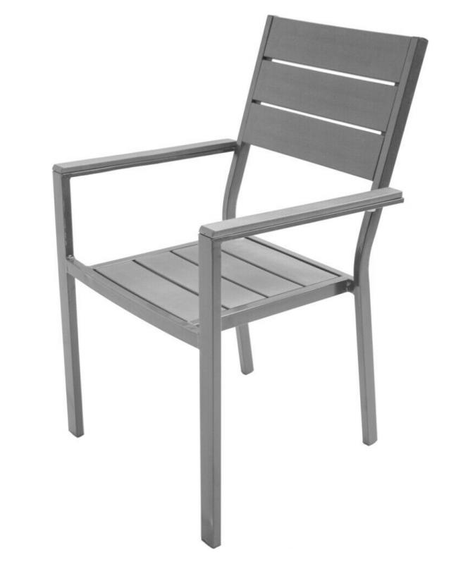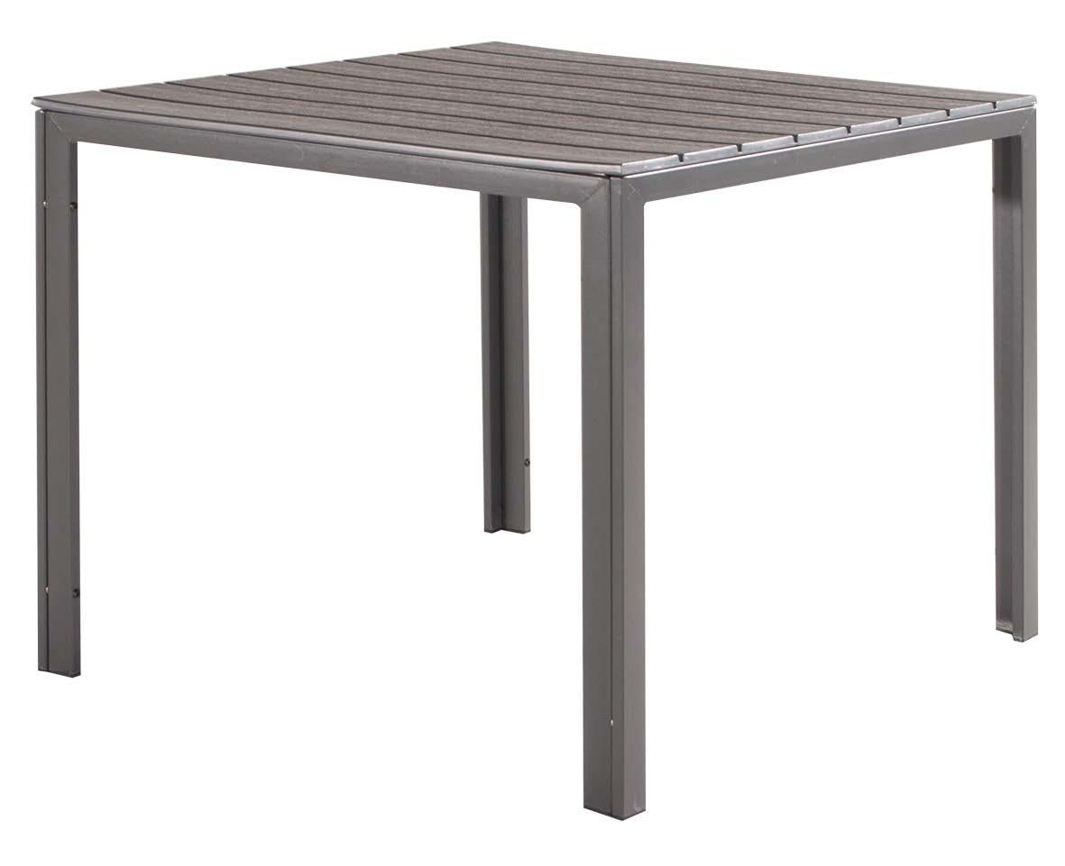 Tavolo 78x78 cm top in plastica HDPE effetto legno e struttura in metallo verniciato