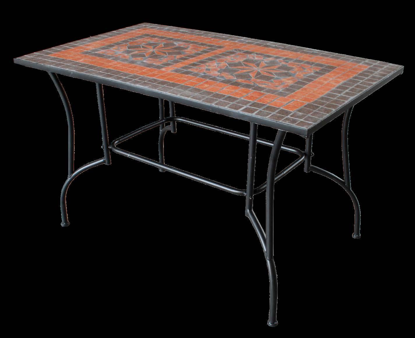 struttura in ferro verniciato a polvere top con piastrelle in ceramica mosaico 140x80 h.75 cm