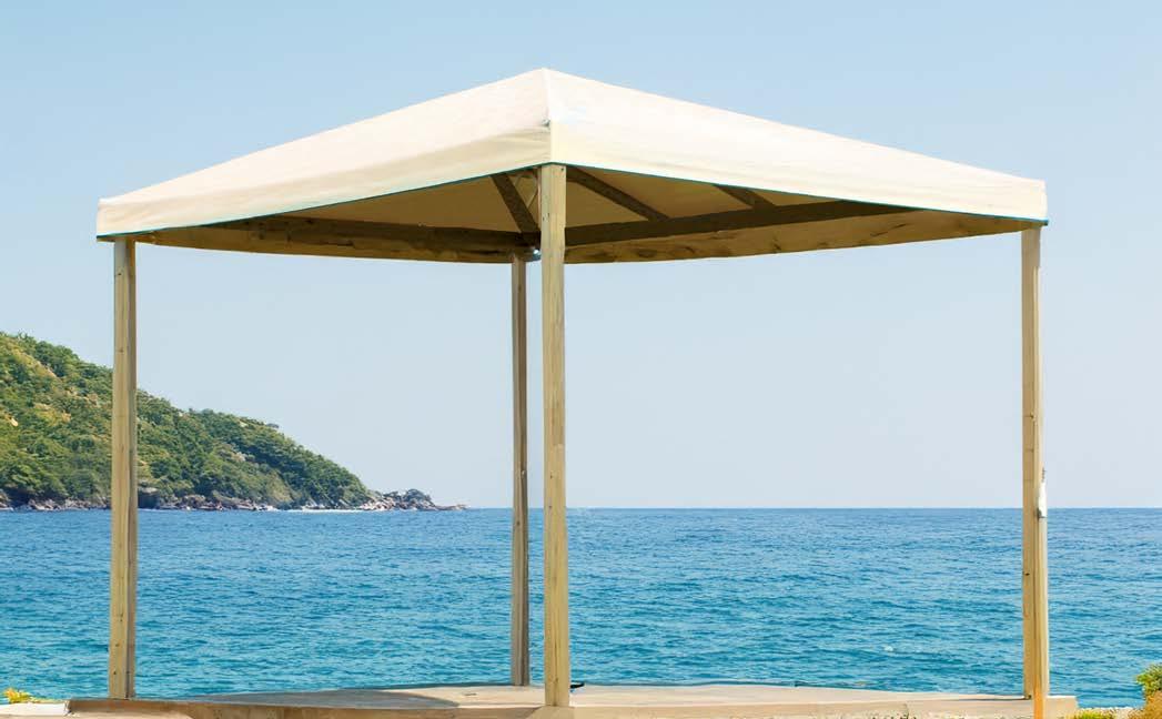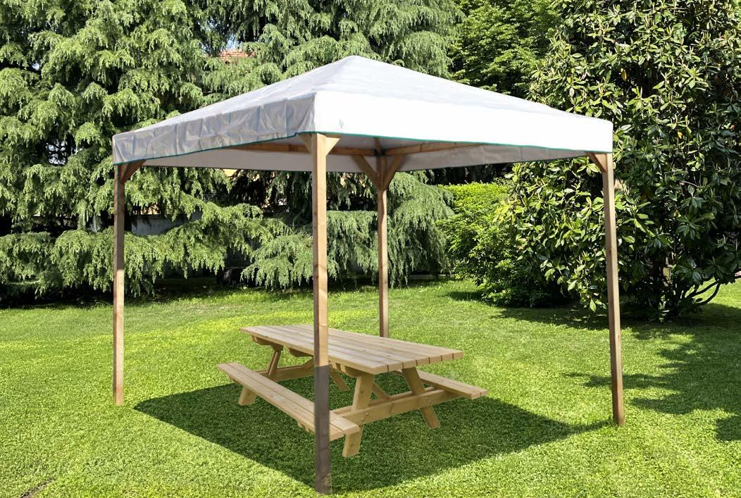 GAZEBO BASIC CON TELO BIANCO di Pino impregnato in autoclave.