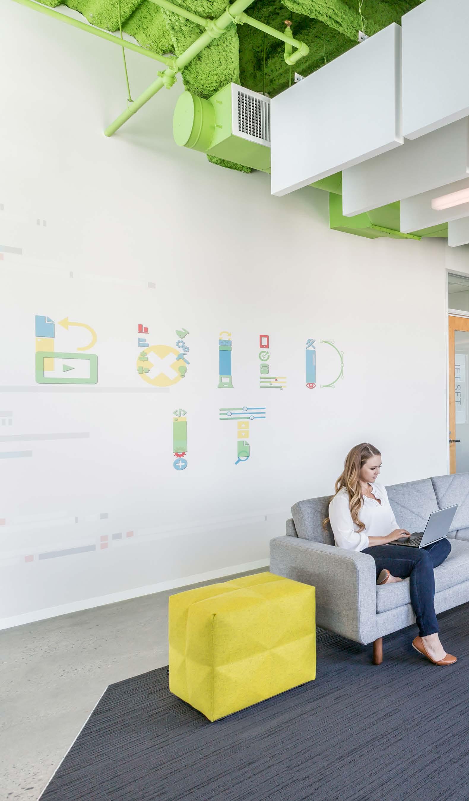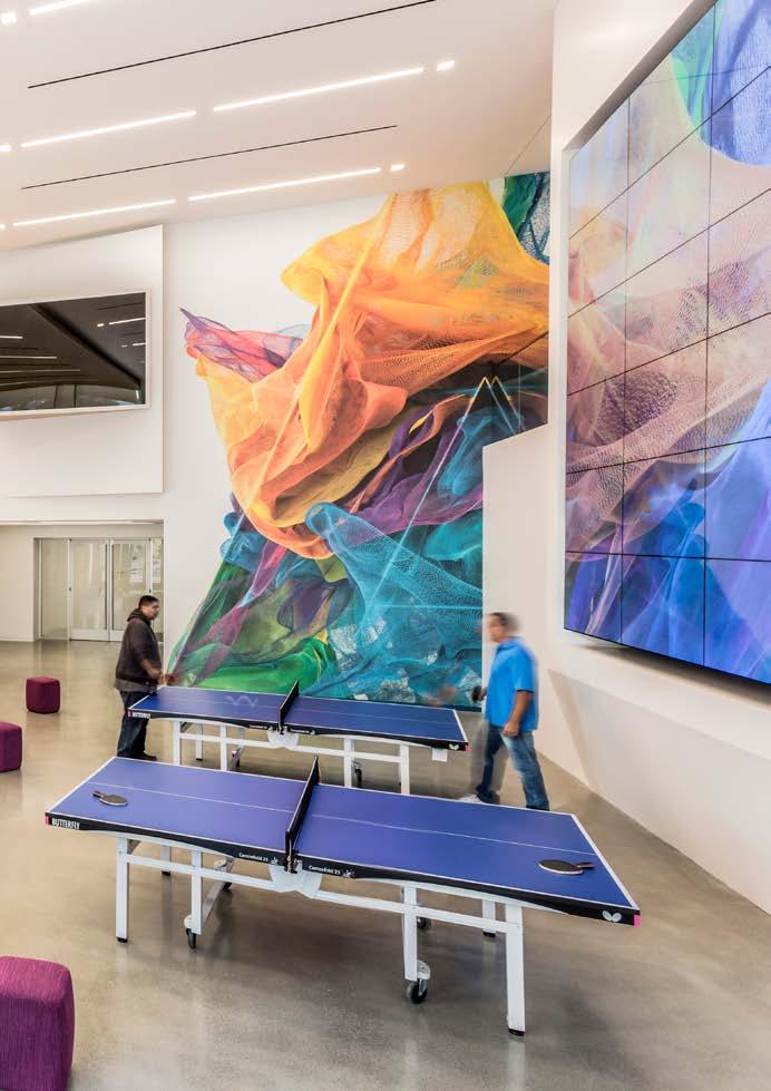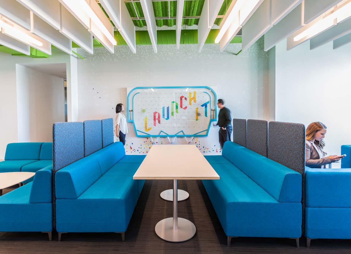 Adobe has since found myriad opportunities to implement these discoveries. The company is adding a fourth building to its San Jose campus for 3,000 additional seats, adding 1,400 seats in San Francisco, and doubling its footprint in Lehi, Utah, with an additional 1,000 seats. New expansions are also underway in Ireland, Poland, Germany, and elsewhere. At each site, on every floor, and around every corner is an opportunity to craft the futureready workspaces needed for Adobe’s next phase.