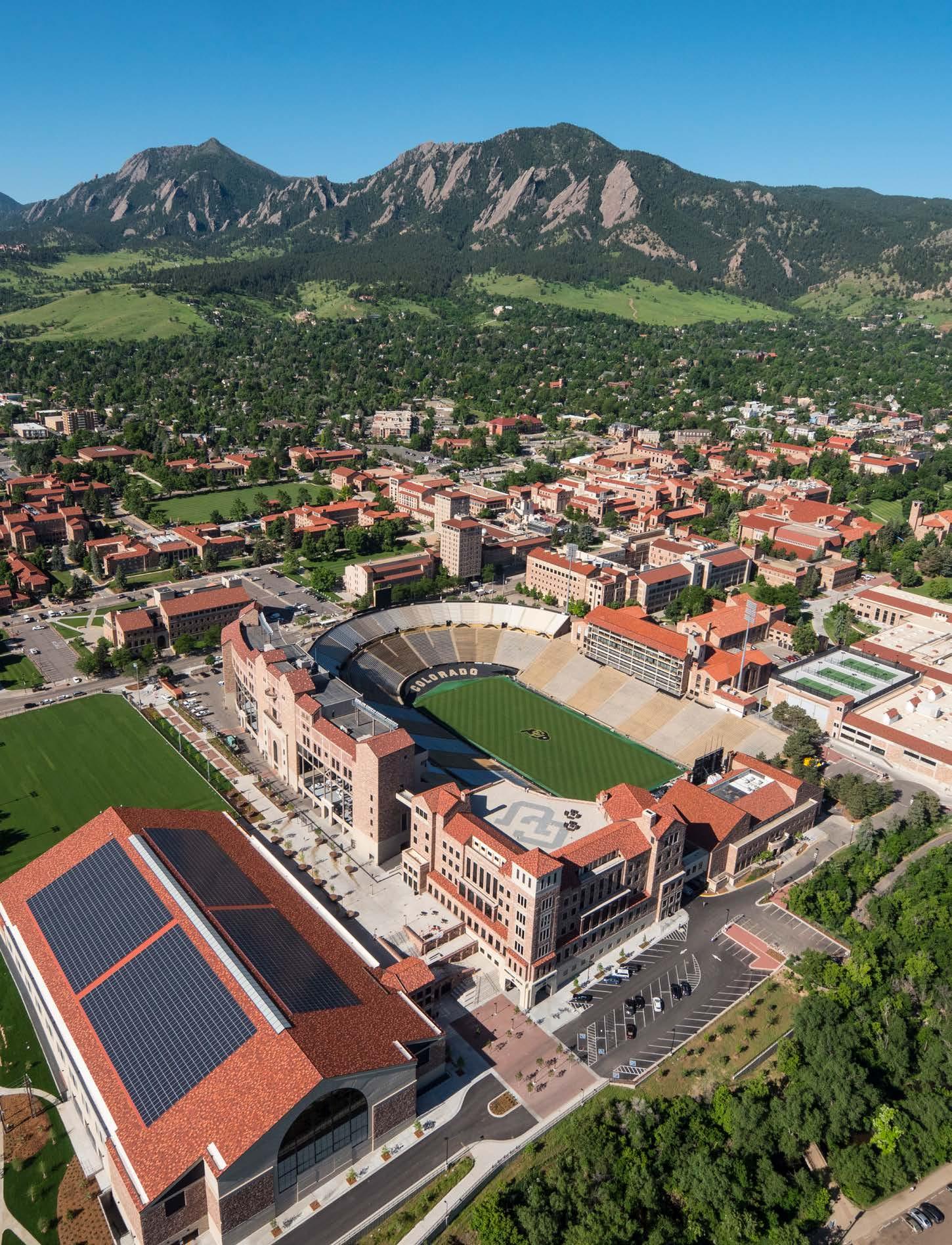 Many of the buildings on University of Colorado-Boulder’s campus are built with red sandstone sourced from quarries near Lyons, Colorado. (P. 34)