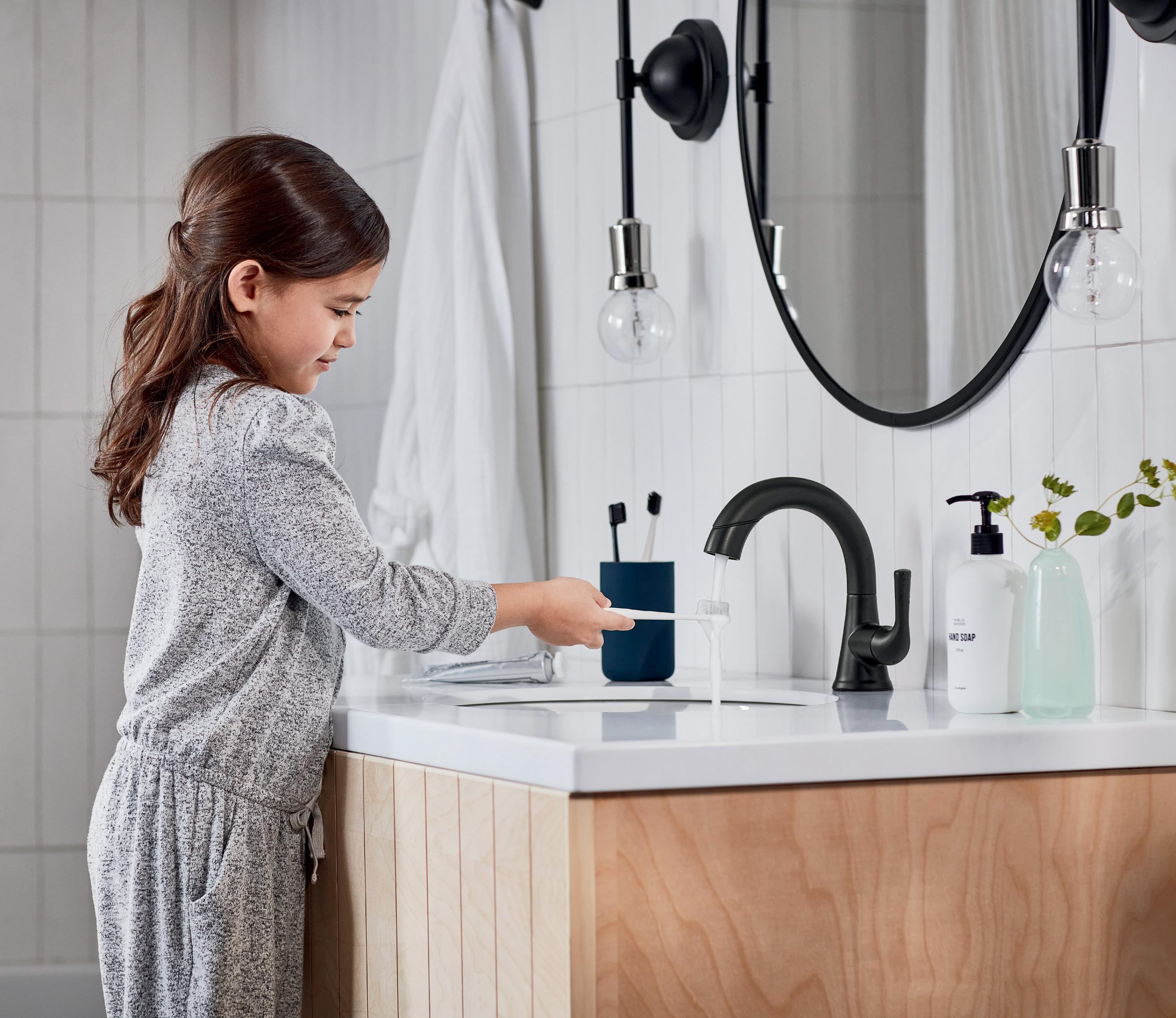 Designed to add seamless beauty to a space while the integrated pull-down spray wand helps keep it that way by quickly and easily clearing away toothpaste, dirt and other debris that may fall into the sink. See the complete Kayra™ Bath Collection at deltafaucet.com. CHANGE YOUR EXPECTATIONS.