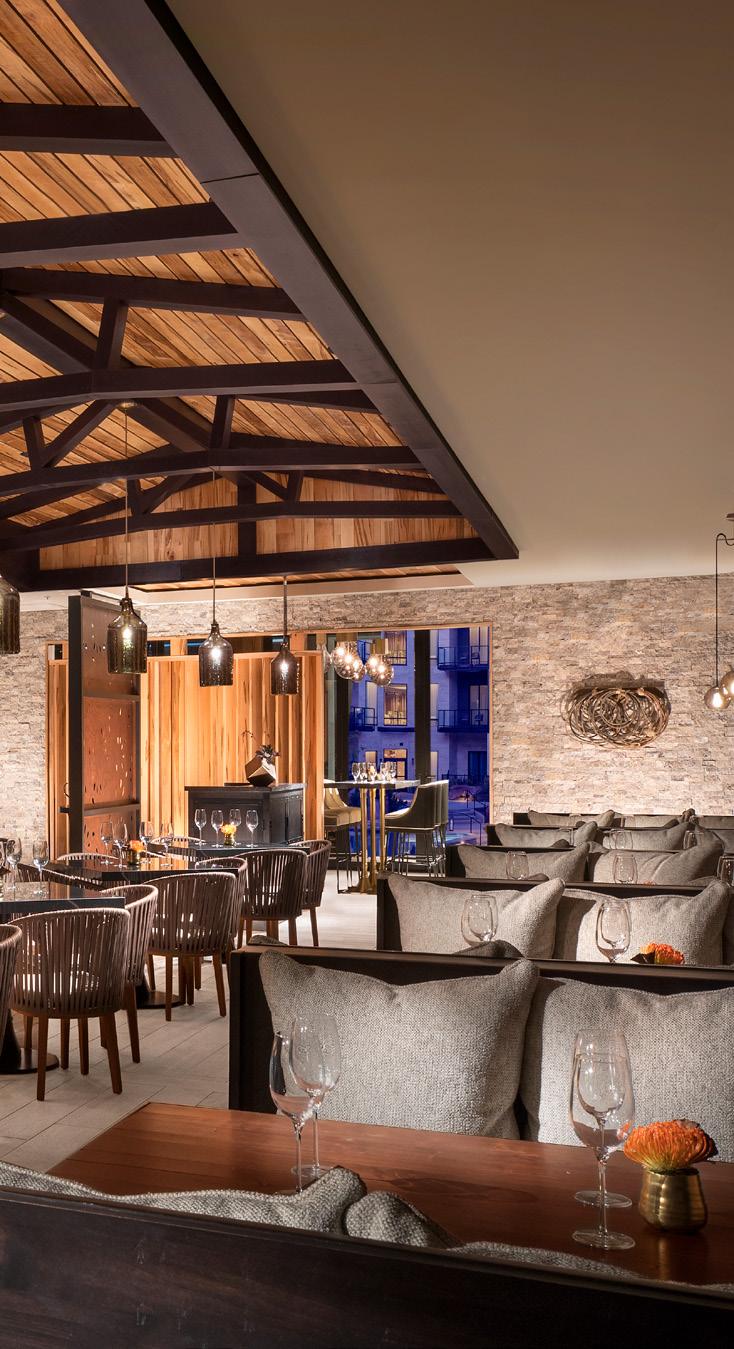 ◀ The Blue Morel Bar serves more than 70 wines by the glass and half glass to accommodate tastings that are perfect for every palate.