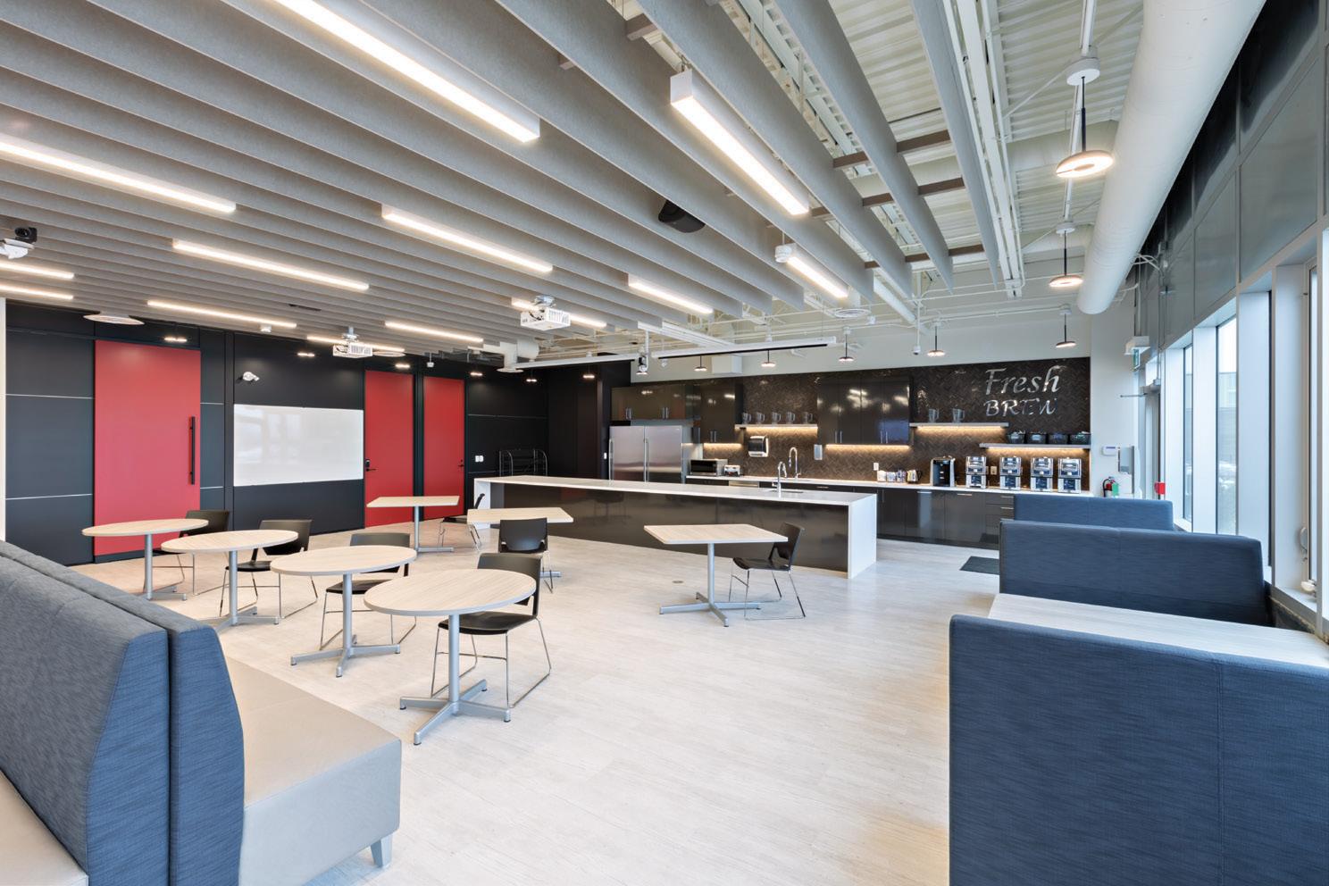 The new office design features just 450 traditional workstations for 1,200 employees. Collaboration pods, wireless infrastructure, advanced A/V equipment, smart booking tools, and other features will help the hybrid workforce of the future connect and contribute on its own terms.
