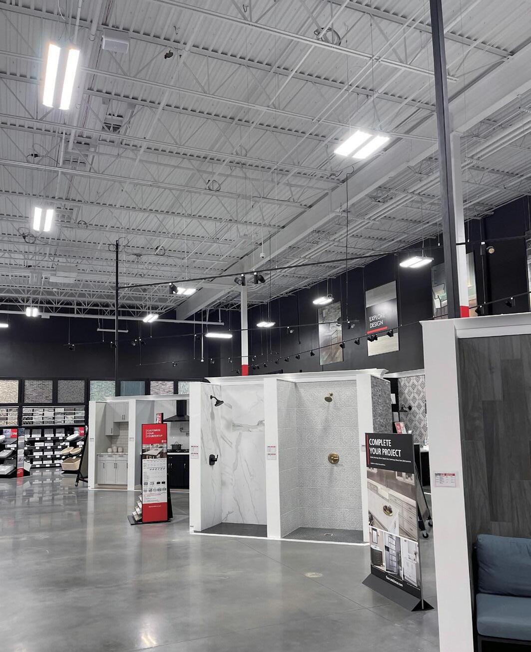 Ed Smith, senior director of construction, coordinates with six project managers who work across the United States to make it all happen. In March 2022, the company celebrated the opening of a 76,000-squarefoot warehouse store and design center on Chicago’s south side. The sprawling location, created at the former Chatham Ridge Shopping Center’s Burlington site, carries one million square feet of product. In the same month, Floor & Decor had three other openings, including one 2,200 miles to the west in North Portland.