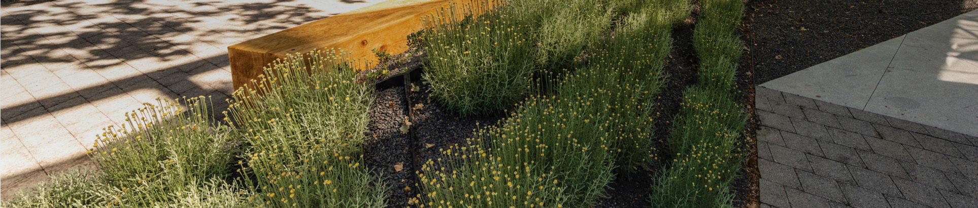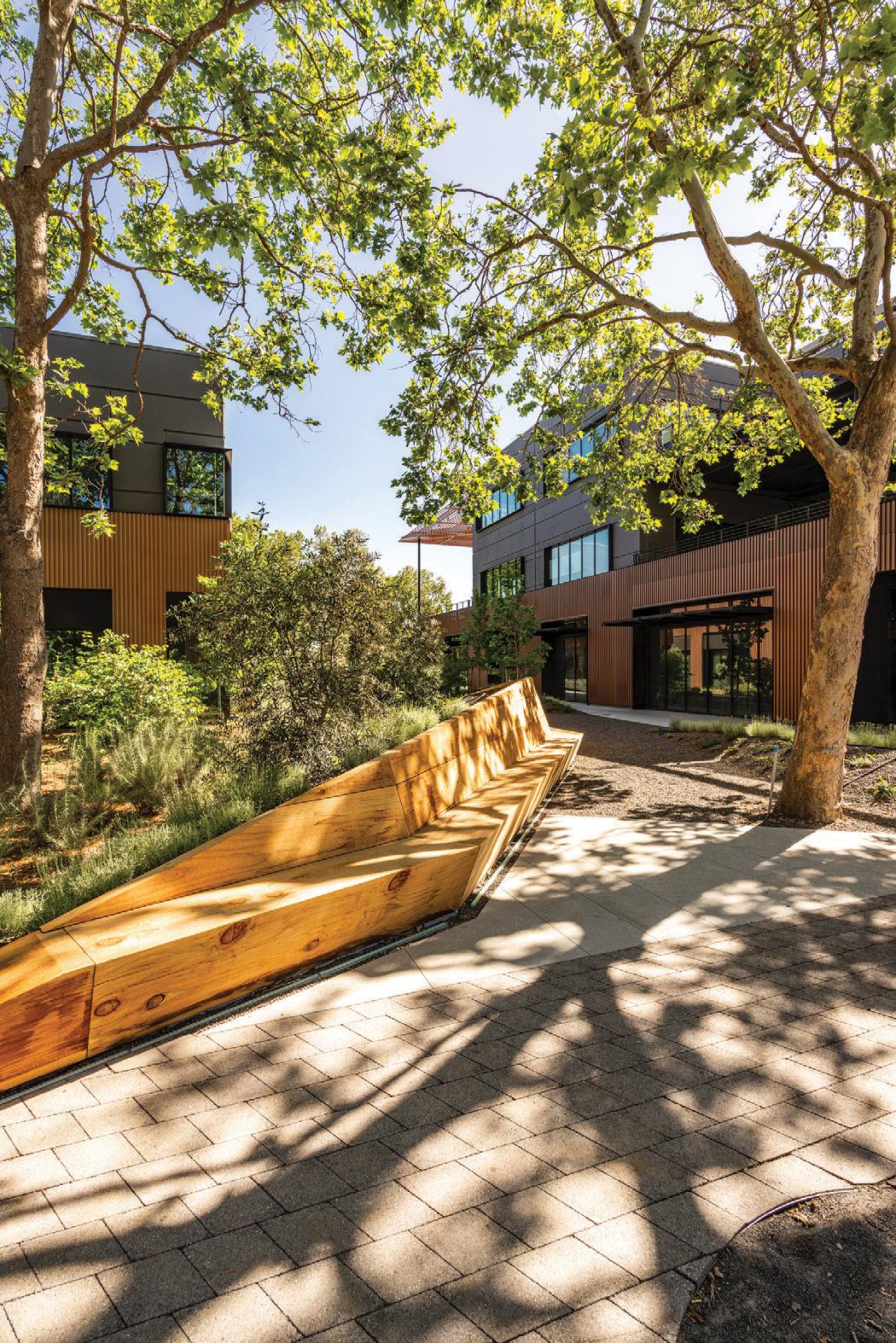 Pictured here are some of the photos of the Phase II work on the Outdoor environment. Redwood was used extensively in the benches and decks. The warm tones and hues of the Redwood tie together the copper anodized cladding and trellises. All the redwood and trellises pictured were designed by SWA & WRNS and built by ASI.