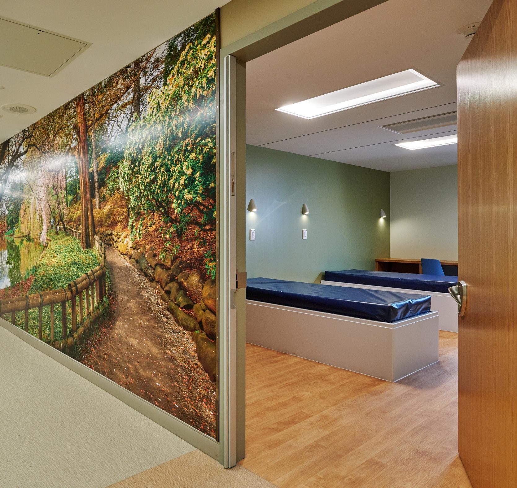 Spectrum Health has an existing six-story facility housing both short- and long-term rehabilitation patients and is strategically moving towards a more hospitable experience. Progressive AE was charged with designing two new one-story residential buildings to create a warmer, more empathetic patient experience. The goal is to create comfortable healing spaces with flexibility in personal comfort, enhancing patients’ recovery time. The team did this by emphasizing a sense of home, creating flexible therapy spaces, and providing environments for positive engagement.