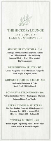 Lake Guntersville Hickory Lounge Menu