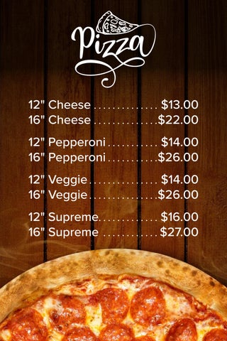 Lake Guntersville Pizza Menu