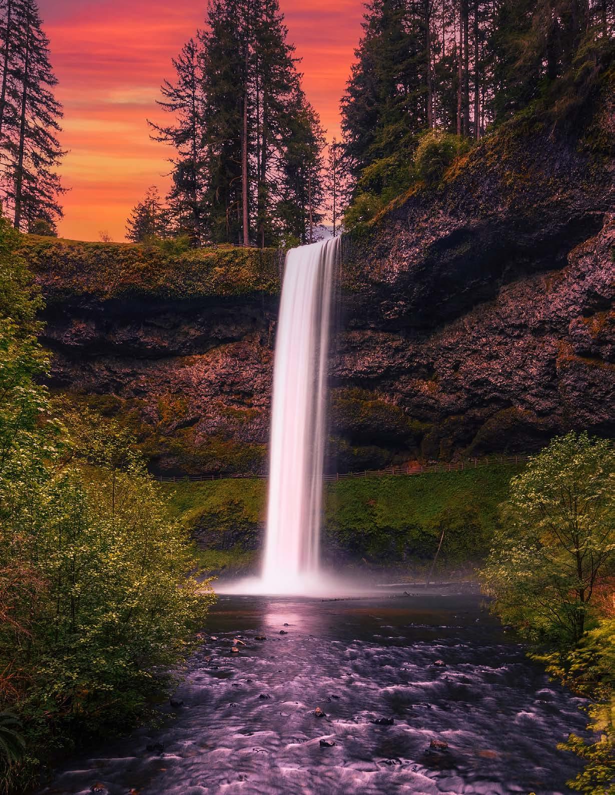 Sunset over South Falls in Silver Falls State Park, Oregon.
