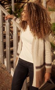 Our Addie Fair Isle Longline Cardigan looks fabulous with a printed top, leggings and boots. It features a Nordic inspired design on the hem and wrists and is available in two wearable colours.
