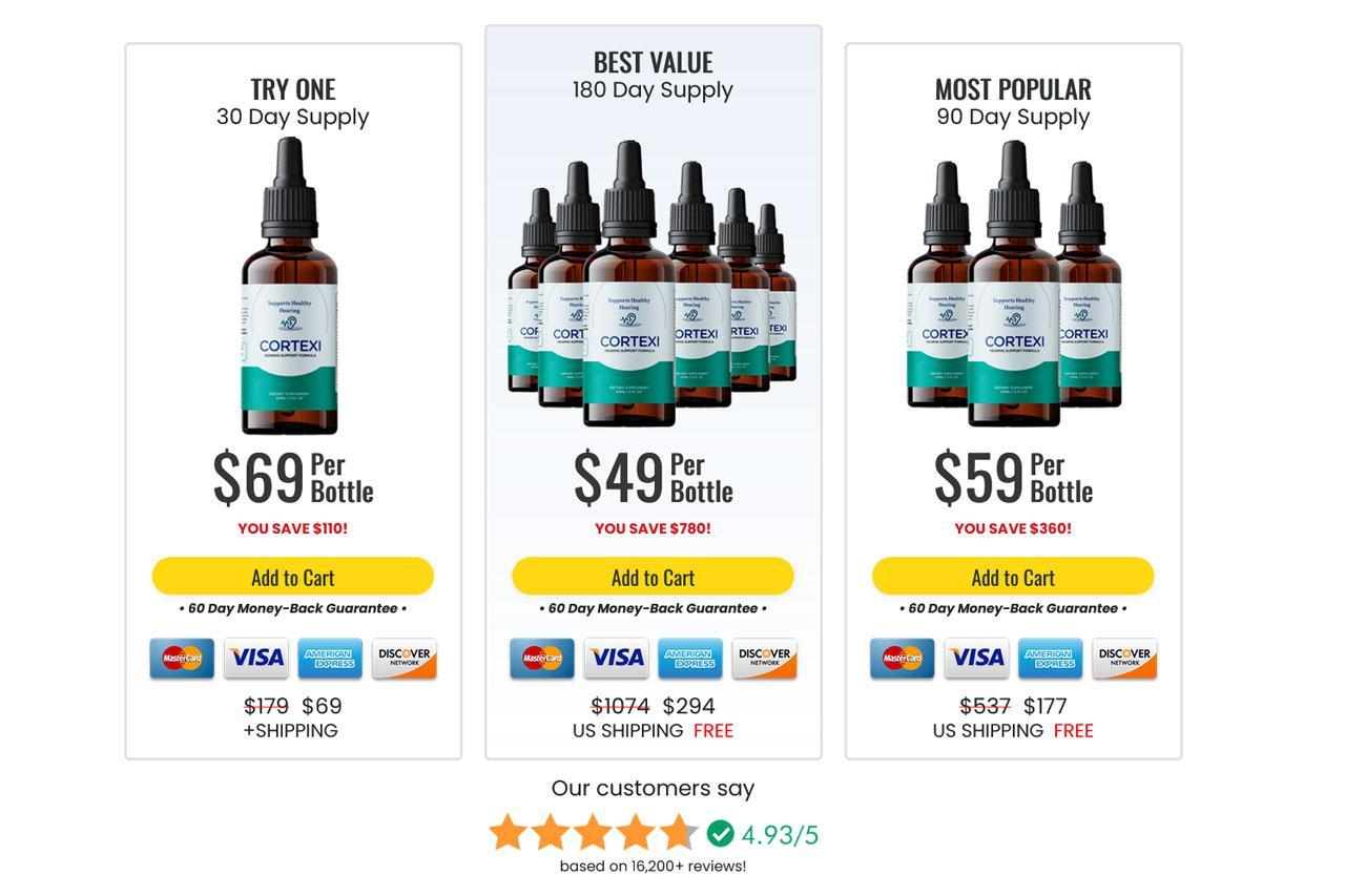 Cortexi is usually priced at $179 per bottle. As part of a 2023 promotion, you can pay just $69 per bottle or less. Plus, all three and 6-bottle purchases come with free bonus items.